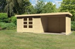 KARIBU Gartenhaus Askola 5, Terragrau, Fichtenholz 19mm, 554 X 246 X 211 Cm, Flachdach, Anbau 2,4m