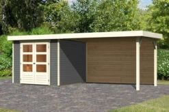 KARIBU Gartenhaus Askola 3,5, Terragrau, Fichtenholz 19mm, 491 X 246 X 211 Cm, Flachdach, Anbau 2,4m