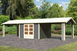 KARIBU Mittelwandhaus Schönbuch 2, Terragrau, Fichtenholz 38mm, 458 X 276 X 228 Cm, Flachdach