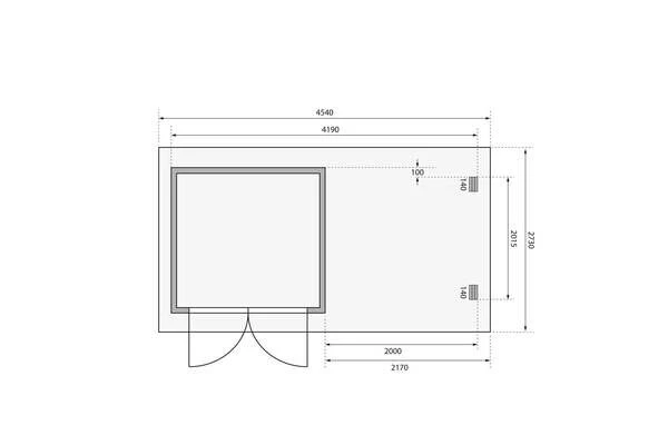- Artikelbezeichnung: Bastrup 2 im Set mit Anbaudach 2 m breit, 28 mm Rückwand