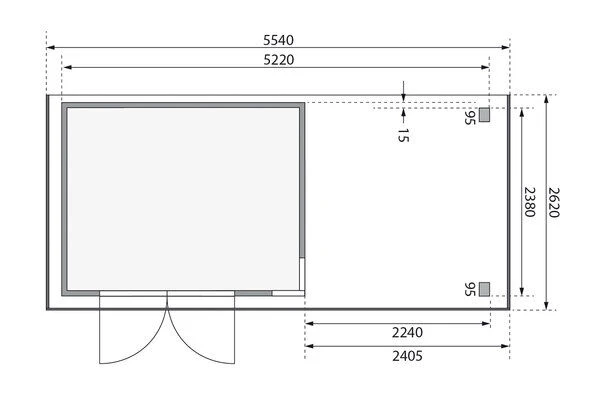 - Artikelbezeichnung: Kerko 5 im Set mit Anbaudach 2,40 m Breite