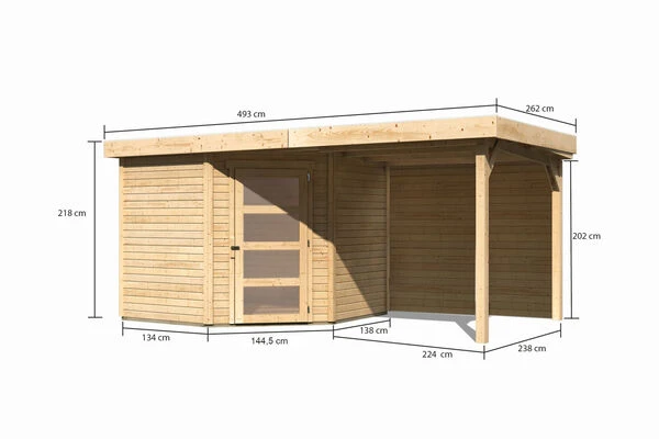 - Artikelbezeichnung: Schwandorf 5 im Set mit Anbaudach 2,40 m Breite und 19 mm Rückwand