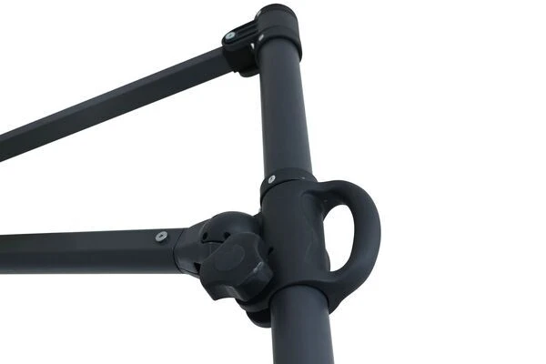 | Kurbelsystem Mit der im Griffteil eingearbeiteten Kurbelmechanik können Sie den Schirm ganz einfach öffnen und schließen. Des Weiteren können Sie hiermit die Dachneigung komfortabel einstellen. | |