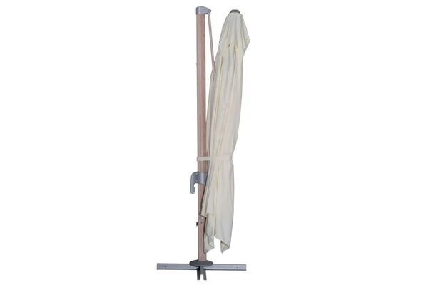 1x Ampelschirm von OUTFLEXX® in Holzoptik, creme, ca. 400 x 300 x 270 cm