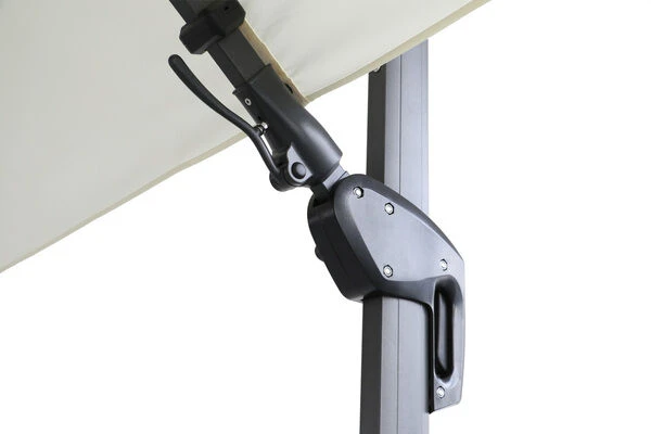 Die Twist-Funktion dieses Ampelschirms ermöglicht eine besonders komfortable Einstellung des Schirmdachs, so dass Sie es immer genau dem Sonnenstand entsprechen ausrichten können: