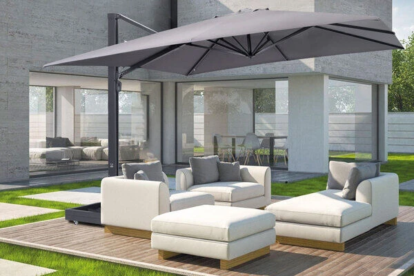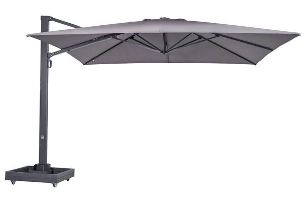 OUTFLEXX® Ultimate L Ampelschirm in anthrazit, ca. 400 x 400 x 310 cm, inkl. roll- und befüllbarer Schirmständer