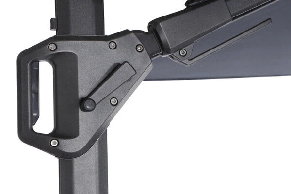 | Leichte Handhabung Dank der leichtgängigen Kurbelmechanik ist der Ampelschirm bei Bedarf schnell und einfach geöffnet oder geschlossen. | |