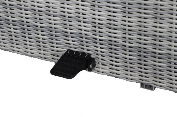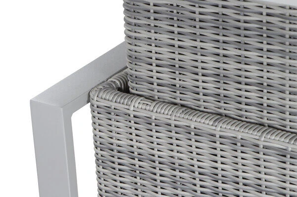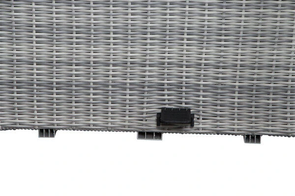 | Stabiles Polyrattan-Geflecht Das halbrunde Polyrattan-Geflecht in der Farbe ice grey ist besonders stabil, wasserabweisend und wetterfest. |