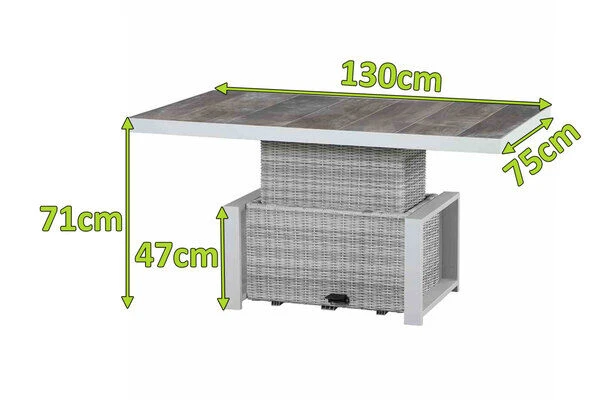 SIENA GARDEN Corido Lifttisch aus Gardino®-Geflecht/Keramik in ice grey, 130x75cm für 4 Personen