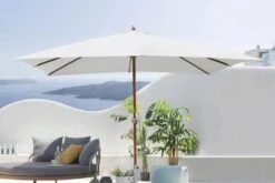 OUTFLEXX Mittelstockschirm, Natur/Teakoptik, Buchenholz, 300×400 Cm