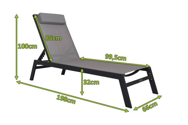 VILLANA Gartenliege, Anthrazit/grau, Aluminium/Textil, 198 X 60 X 32 Cm, Verstellbar
